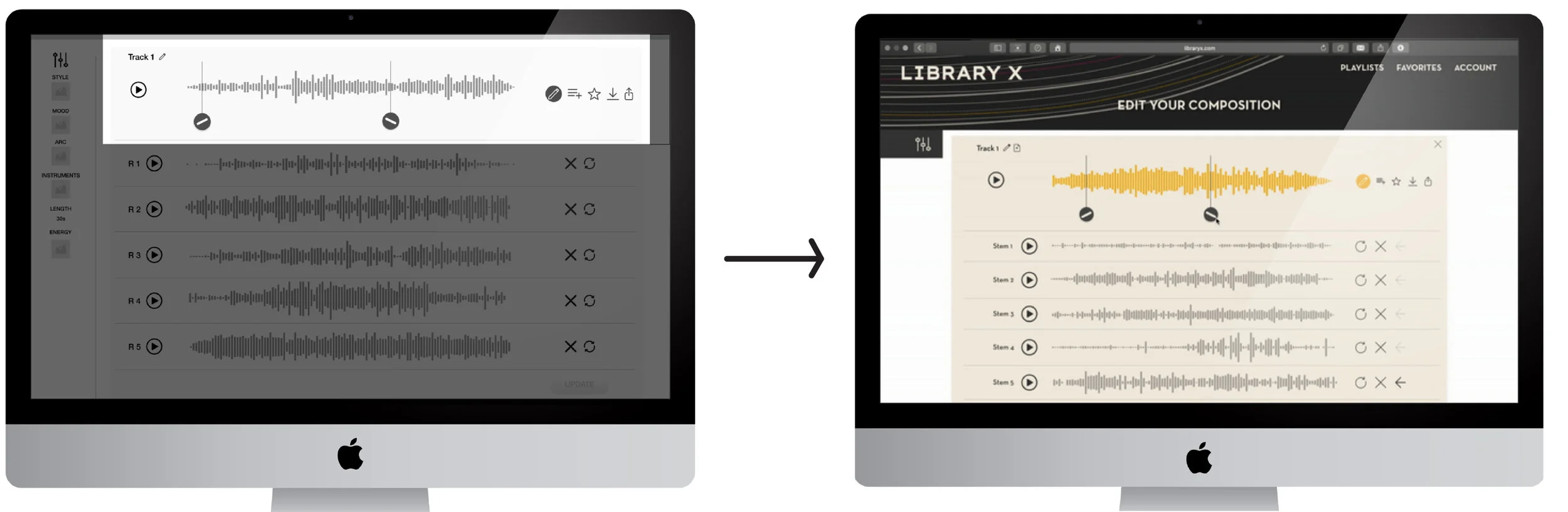 Library X, is a new platform designed to disrupt the existing stock music library market. Through use of AI generated music based on simple user-inputed filters, even non-musically proficient professionals will be able to compose and edit the generated tracks to sound like a composer was hired for their project.